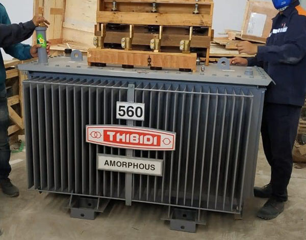 - Máy biến áp Thibidi Amorphous 3 pha 560kVA thuộc dòng máy ngâm dầu. Thiết bị được hạ nhiệt qua cơ chế ONAN (làm mát tuần hoàn tự nhiên bằng dầu và không khí).